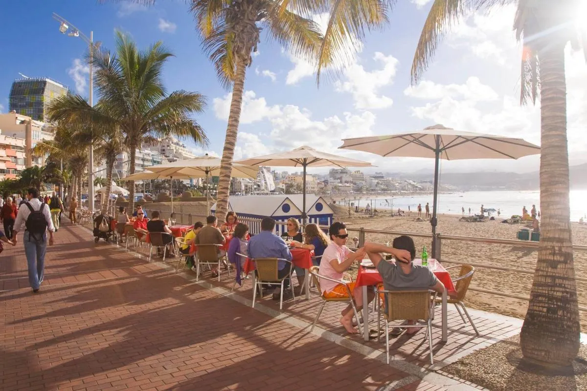 Disfruta de una agradable cena en uno de los incontables restaurantes con terraza en la Avenida de Las Canteras.